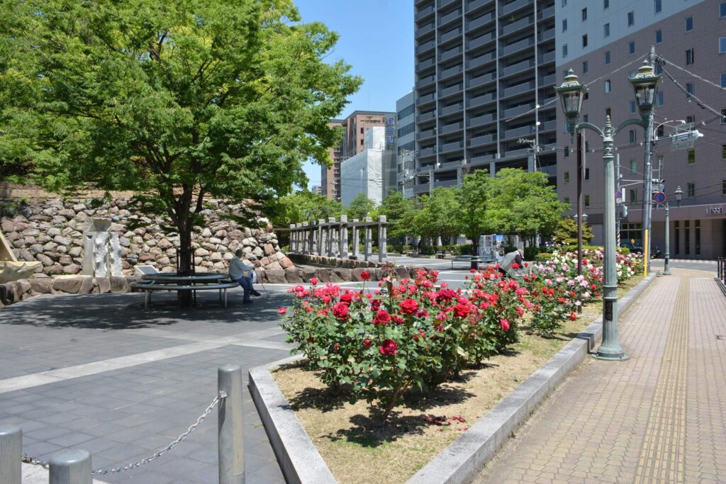 駅南側(ばら公園口)は、百貨店の「天満屋 福山店」や駅直結の「さんすて福山」、複合施設の「アイネスフクヤマ」などが集まる商業の中心地です。
