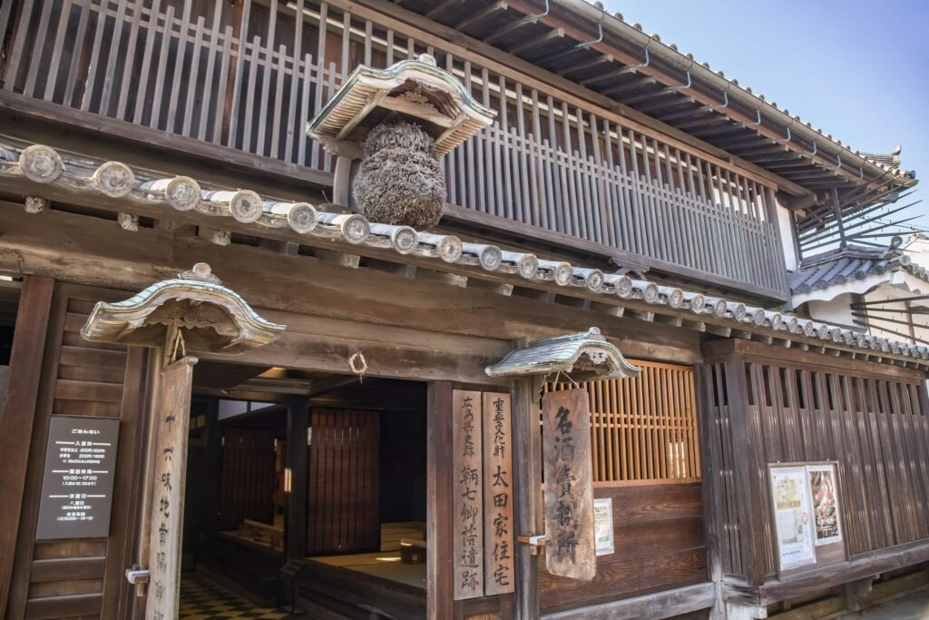 保命酒はもち米、焼酎、16種類の薬味を使った薬味酒で、江戸時代には鞆の特産品として栄えました。太田家住宅にはかつての醸造蔵などが残っています。